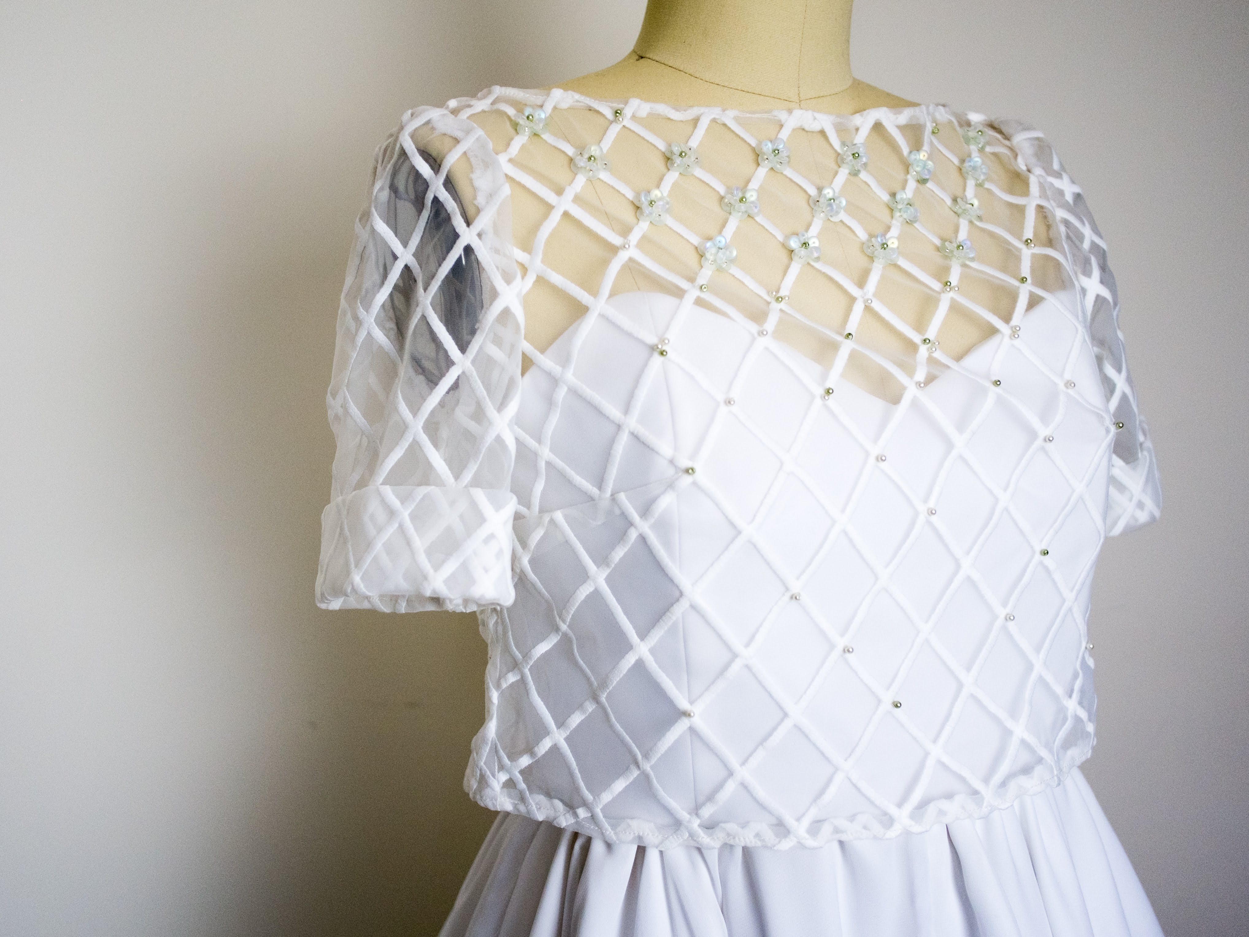 Designed, drafted, cut and sewn.Materials: Polyester satin, polyester chiffon, organza